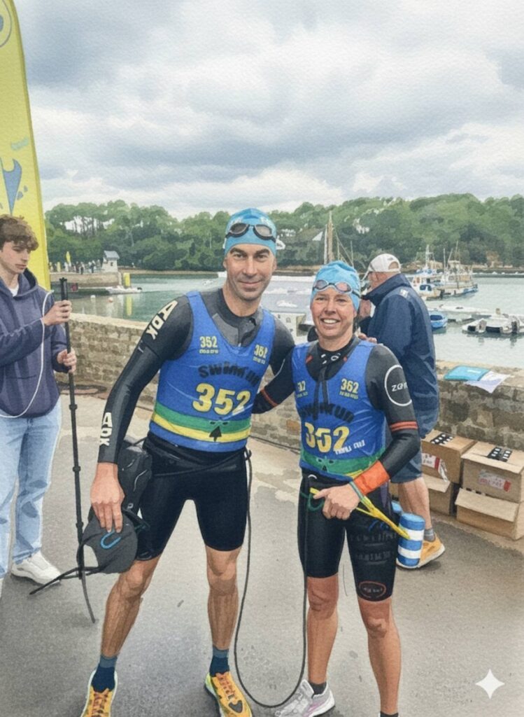 Valérie est transie de froid. Elle me confie à ce moment-là qu’elle n’a jamais autant souffert ! Je suis admiratif de son abnégation et en même temps inquiet d’avoir peut-être été trop exigeant. Le lendemain, ma partenaire de choc me lance : “Carrément prête à y retourner !” Le swimrun, une pratique addictive ? Vous croyez ?! 😁
