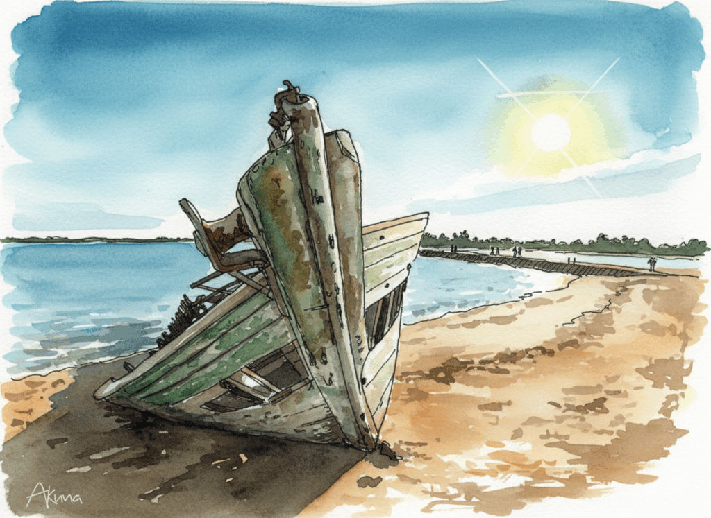 Je force l’allure, conscient que la natation reste décidément mon point faible. La célèbre maison rose assume avec fierté son rôle d’amer. L’une de mes manchettes menace de s’échapper et contrarie ma technique de nage déjà bien laborieuse. Ce n’est même pas la fatigue : juste un implacable rappel de mes limites aquatiques. Quelle idée de mettre un ex-footballeur et judoka dans ce marasme liquide !