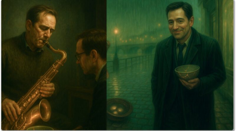 Lars puts away the saxophone with surgical delicacy. “You continue. But this time, you don’t count. You play.” He pushes the kintsugi bowl toward Louis. “And take this. Antonin wanted you to have it. He said you’d eventually understand you can drink from a broken bowl. That tea even tastes better when poured into gold-repaired cracks.”